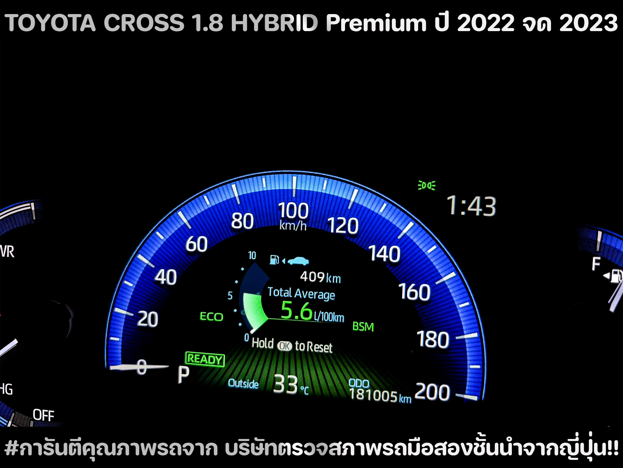 ปี ค.ศ. : 2023 ขนาดเครื่องยนต์ : 1.8 cc. ชนิดเชื้อเพลิง : เบนซิน + ไฟฟ้า เกียร์ : ออโต้